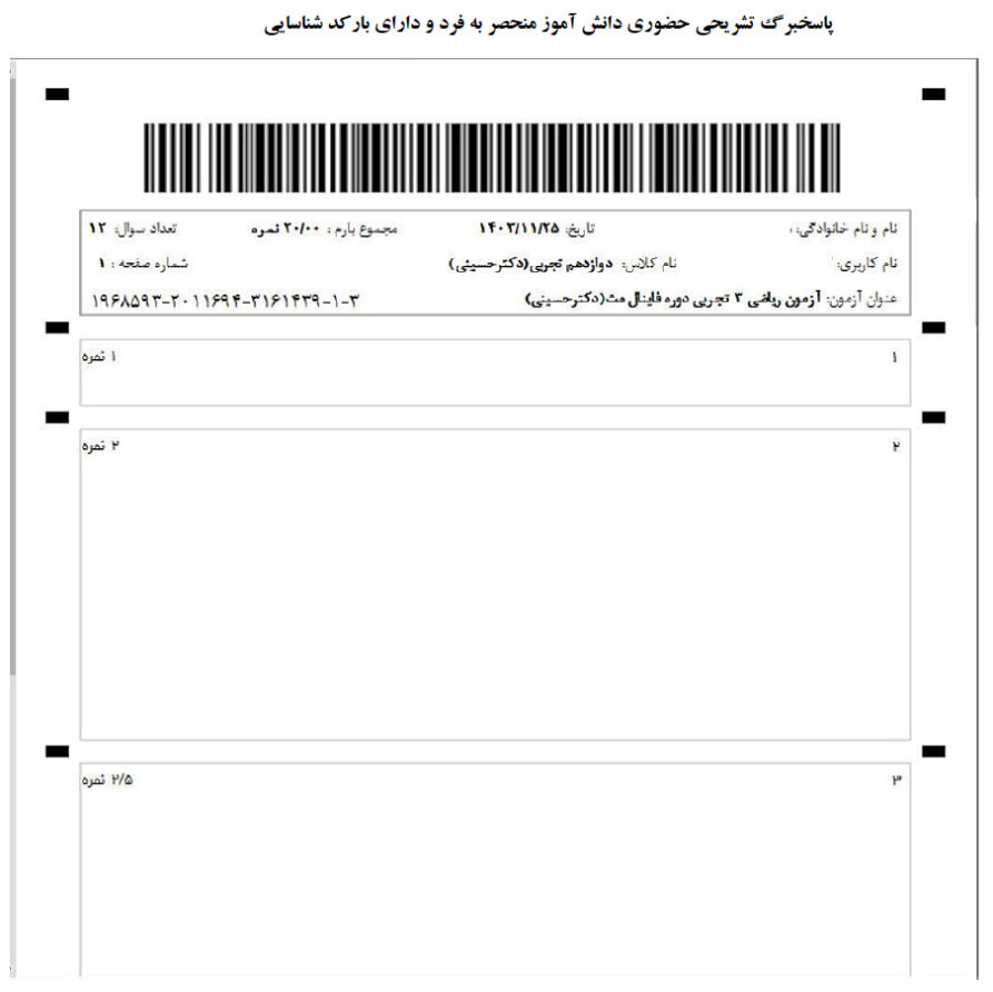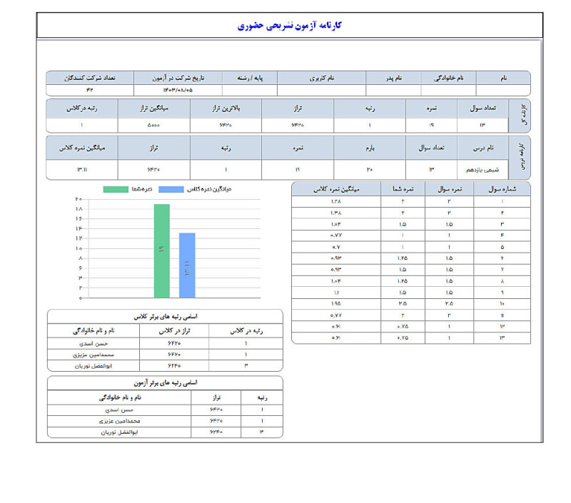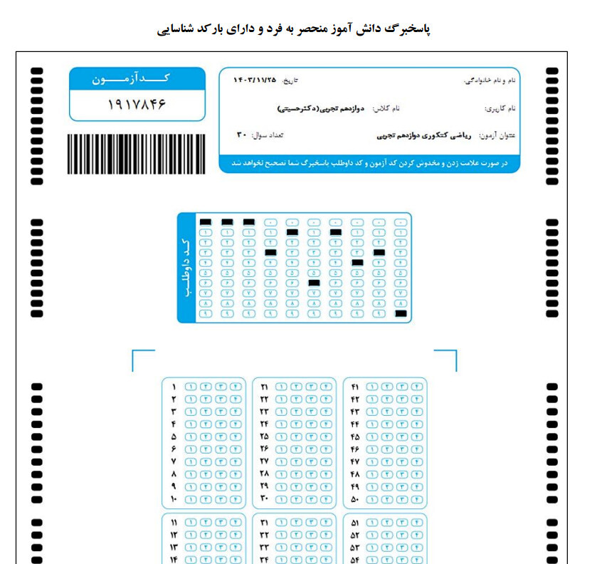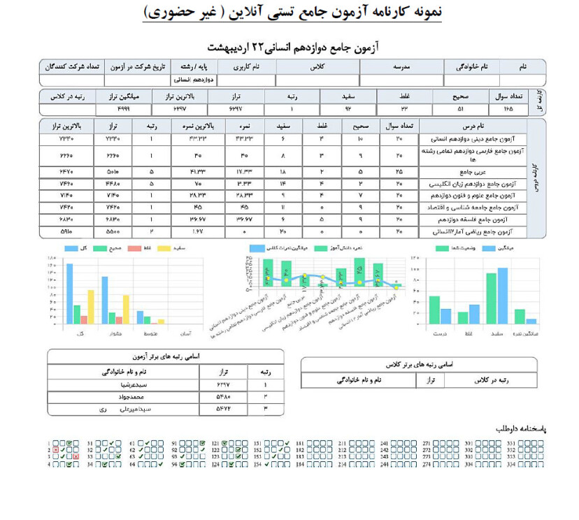 از طریق این سامانه آزمونهای مختلفی برگزار میگردد که نمونه کار، ارائه شده است
